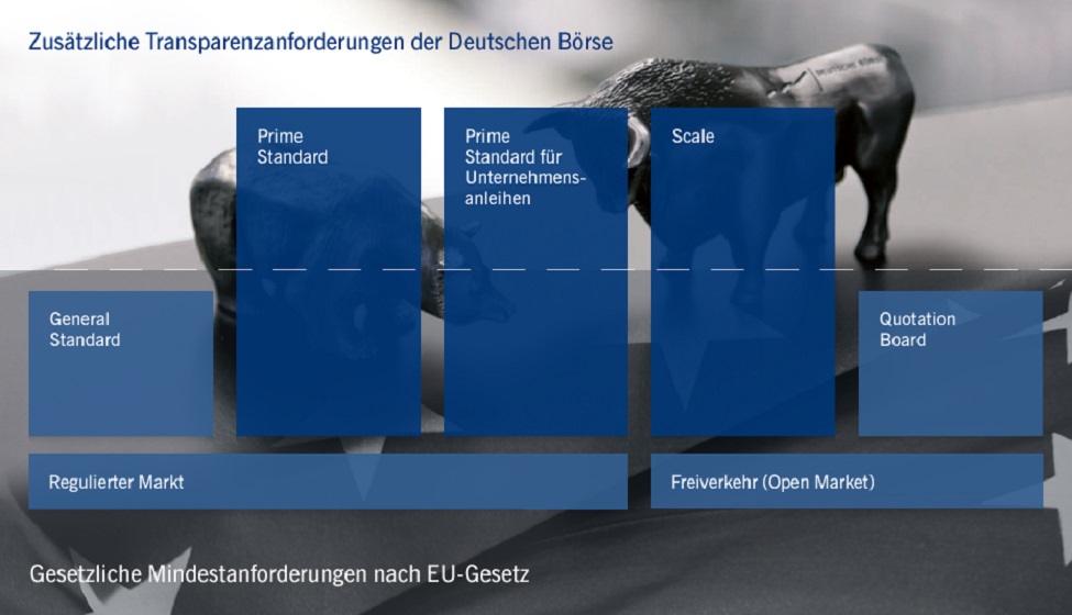 Neben dem regulierten Markt stehen die Freiverkehre, die von den jeweiligen Börsenträgern durch ihre Börsenordnungen und Geschäftsbedingungen geregelt und von diesen überwacht werden. Diese teilen sich ebenfalls in Untersegmente mit unterschiedlichen Zugangsregelungen und Transparenzanforderungen auf. Das Segment Scale der Frankfurter Wertpapierbörse ist zudem ein sogenannten KMU-Wachstumsmarkt.