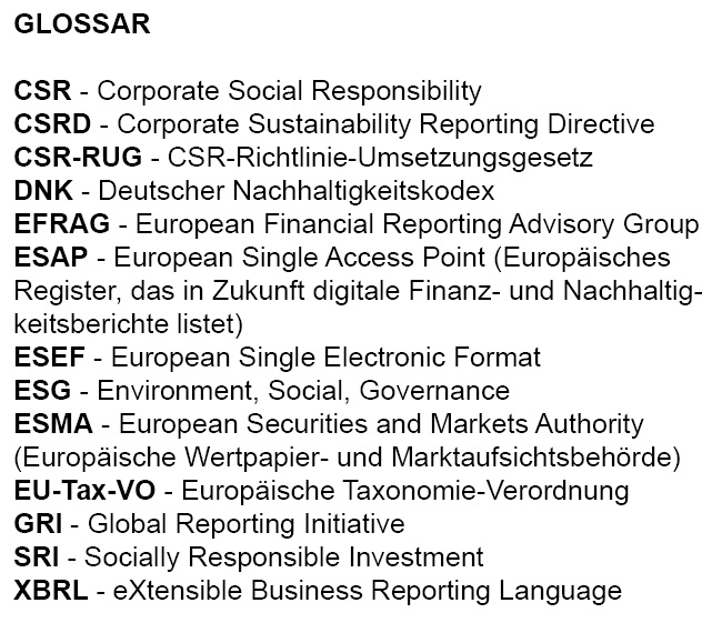 Vor der Tür steht nunmehr der Nachfolger der CSR-Richtlinie, die CSRD. Im Sommer 2022 hat sie konkrete Gestalt angenommen. Gleiches gilt für die im Entwurf vorliegenden europäischen ESG Berichtsstandards (ESRS), nach denen künftig branchenübergreifend sowie sektorspezifisch über den ökologischen und sozialen Fußabdruck des Unternehmens berichtet werden muss, und zwar als Teil des Lageberichts. Die Finalisierung des Regelwerks steht zwar noch aus, jedoch ist mit erdrutschartigen Veränderungen nicht mehr zu rechnen.