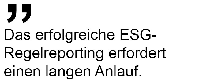 Auch wenn die ersten Berichte nach CSRD erst im Jahr 2025 veröffentlicht werden müssen: Das erfolgreiche ESG-Regelreporting erfordert einen langen Anlauf. Es gilt, sich frühzeitig mit dem Nachhaltigkeitskonzept und den erforderlichen Berichtsinhalten auseinanderzusetzen. Unternehmen sollten gleich zu Beginn klären, welche Ressourcen dafür im eigenen Hause zur Verfügung stehen und welche eingekauft werden sollten.