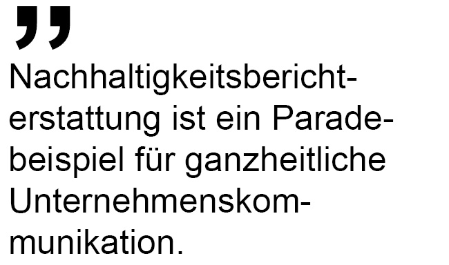 Unter Einbezug der vielschichtigen Regulatorik sollte das Unternehmensreporting ganzheitlicher Teil des Geschäftsmodells und der Kommunikation werden. Wer unternehmerisch überzeugen will, braucht eine Geschäftsstrategie, die es schafft, Krisen zu bewältigen und Umweltziele entlang der Wertschöpfungskette zu berücksichtigen. Diejenigen Unternehmen, die Verantwortung übernehmen und Haltung zeigen, werden ihre Unternehmenskommunikation glaubhaft und überzeugend ausgestalten können und sie werden dadurch auch erfolgreicher bei der Kundenansprache und der Wachstumsfinanzierung sein.