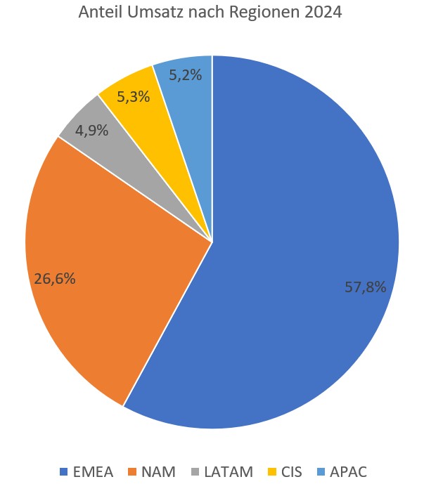 Wachstumstreiber ist der nordamerikanische Markt, wobei die Präsidentschaftswahlen die Nachfrage im Vorfeld dämpften. Daneben konnte nur der russische Markt zulegen, wobei die Produktion in der Region aufgrund der Sanktionen autonom und unabhängig agiert. Die Entwicklung in Asien wurde durch China gebremst, während sich die anderen Länder der Region positiv entwickelten. Der Kernmarkt Europa, mit einem Umsatzanteil von 58 Prozent, leidet weiterhin unter der volatilen Wirtschaftslage und der anhaltenden Rezession in der Bauindustrie.