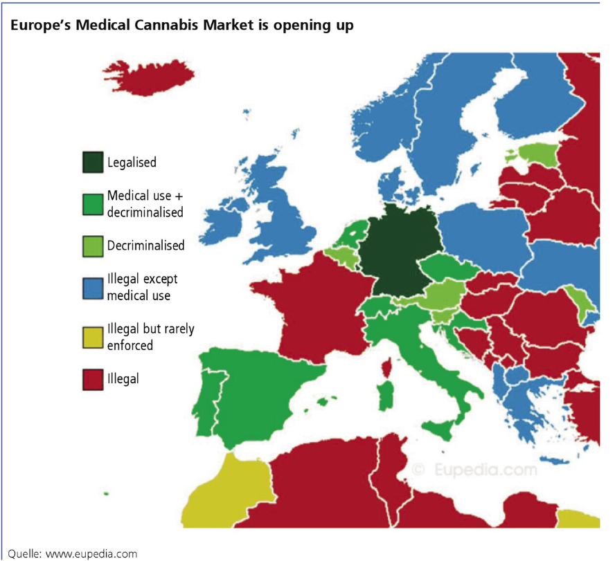 Europa ist im internationalen Vergleich ein Nachzügler, aber mit interessanter Struktur. In den meisten Ländern ist medizinisches Cannabis zumindest in eng definierten Indikationen legal, Freizeitmodelle befinden sich meist noch im Stadium von Pilotprojekten. Deutschland, Italien, die Niederlande und einige kleinere Märkte gelten als Treiber eines europäischen Medizinalmarkts, der in den nächsten Jahren von einer niedrigen Milliardengröße aus weiter zweistellig wachsen dürfte.