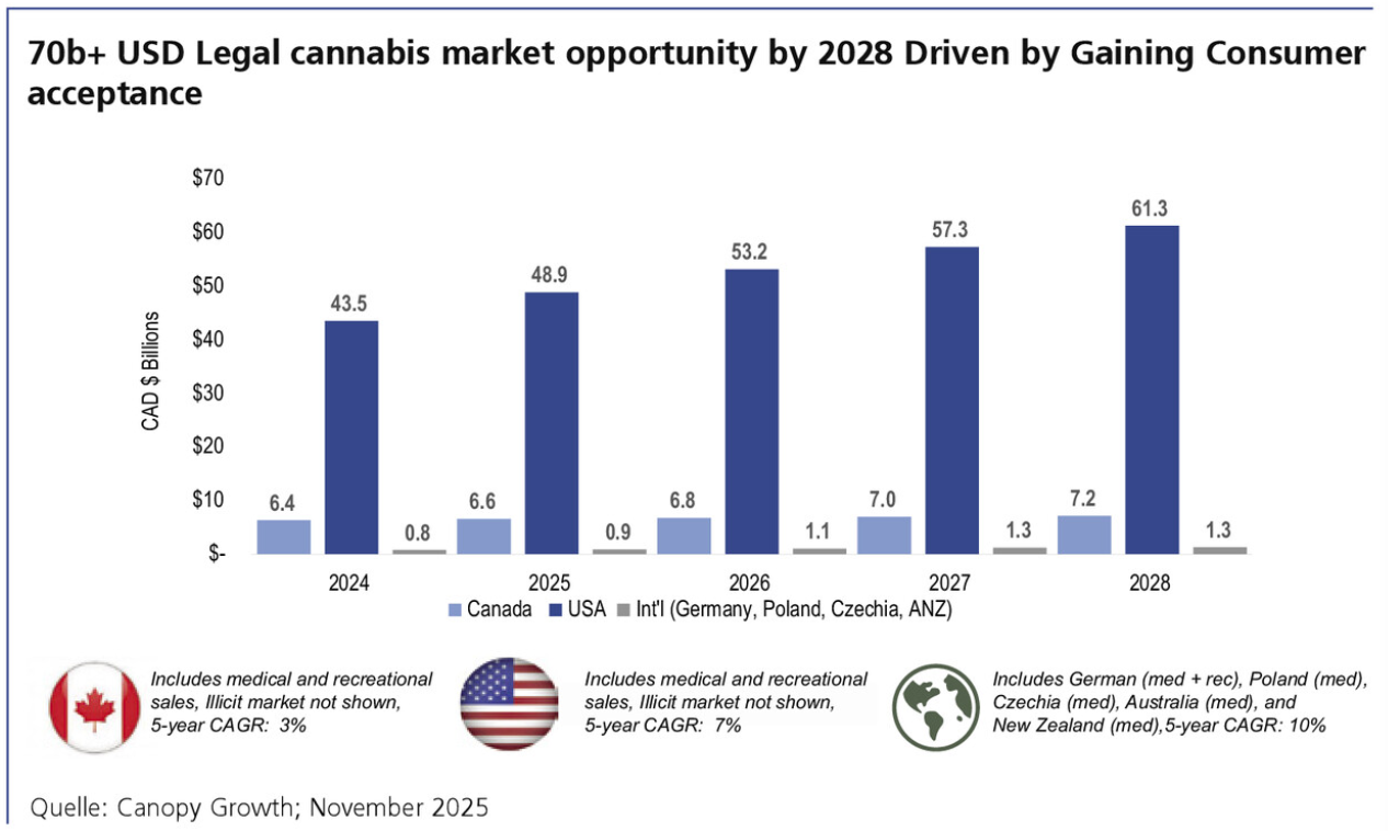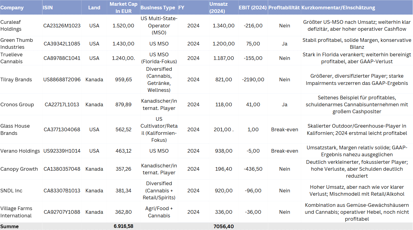 In den USA verschiebt sich der Schwerpunkt vom medizinischen Markt zum Freizeitmarkt. Mehr als 20 Bundesstaaten haben Adult-Use-Märkte eingeführt, in rund 40 Staaten ist medizinisches Cannabis zulässig. Auf Bundesebene bleibt Cannabis zwar (noch) ein „Schedule-I“-Stoff, gleichzeitig wird eine Herabstufung diskutiert, die die Steuerlast der Unternehmen deutlich senken könnte. In Kanada ist Cannabis seit 2018 landesweit auch für den Freizeitgebrauch legal; der legale Markt hat inzwischen den Großteil des Konsums absorbiert, leidet aber unter Überkapazitäten und Preisdruck. Für die Kapitalmärkte heißt das: selektive Bereitschaft, neue Equity Stories zu finanzieren – aber nur, wenn diese klarer, konservativer und cashflownäher sind als in der ersten Welle.