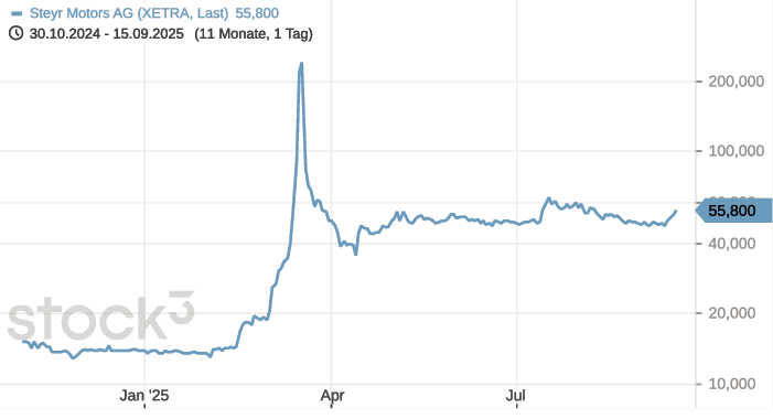 Einen engen Bezug zu Deutschland weist auch der österreichische Spezialmotorenhersteller Steyr Motors (Market Cap 290 Mio. EUR) auf, dessen Hochleistungsdieselmotoren und Energieerzeugungsaggregate nicht nur, aber auch für militärische Fahrzeuge und Waffensysteme entwickelt und produziert werden. Nach erfolgreicher Restrukturierung brachte die deutsche Beteiligungsgesellschaft Mutares die Oberösterreicher im Oktober 2024 an die Frankfurter Börse. Erst im Februar 2025 erfolgte dann das Zweitlisting an der Wiener Börse. Wie bei den bisher genannten Rüstungswerten ging der Aktienkurs auch für Steyr Motors nach oben – der Erstausgabepreis lag bei 15,90 EUR, aktuell notiert das Unternehmen um die 50-EUR-Marke.
