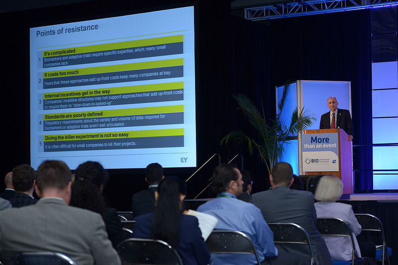 Glen Giovanetti, EY Global Life Leader, stellte den neuen Report „Beyond Borders 2014: Unlocking Value" vor. Der Report beschreibt die große Herausforderung, der sich biopharmazeutische Unternehmen stellen müssen: Verbesserung der betrieblichen Effizienz im Bereich Forschung & Entwicklung. Er zeigt Strategien auf, inwiefern Biomarker, klinische Studien sowie branchenübergreifende Konsortien dabei zur Lösung beitragen können.